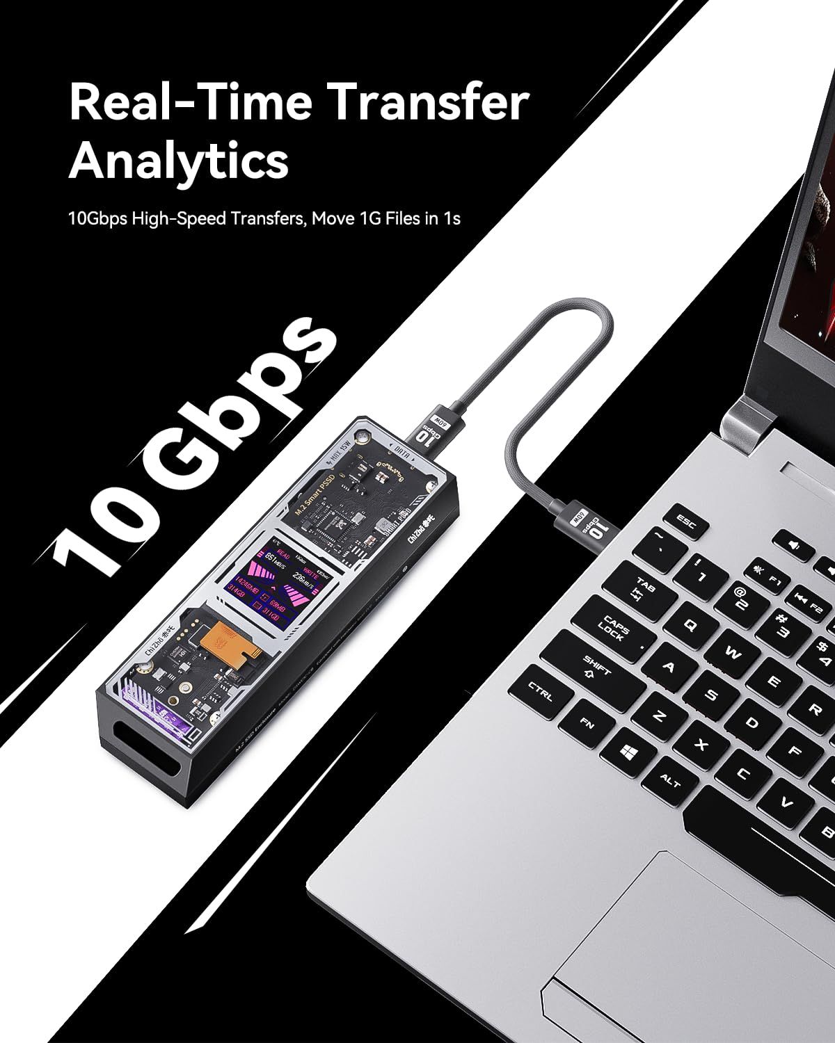 CHIZHA M 2 NVMe SSDケース USB 3 Gen Type C 10 Gbps IPS液晶ディスプレイと10秒 電源保護 PLP 2230 2242 2260 のNVMe PCIeに対応す