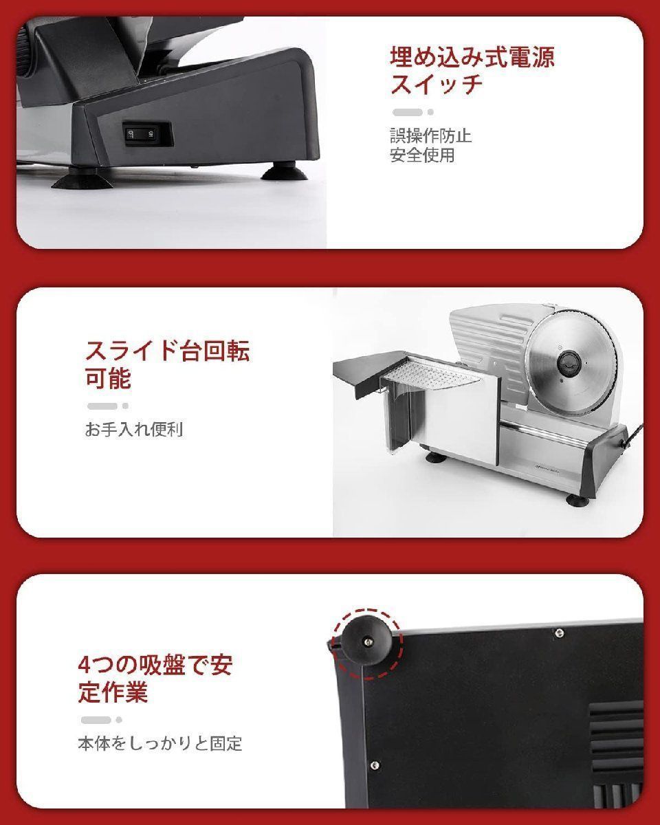 電動スライサー ミートスライサー フードスライサー スライス厚さ1 15 mm調整 しゃぶしゃぶ肉 パン ハム チーズ 野菜 果物 電動フードスライ