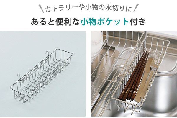 ●お箸やカトラリーの水切りができる便利な小物ポケット付きです。