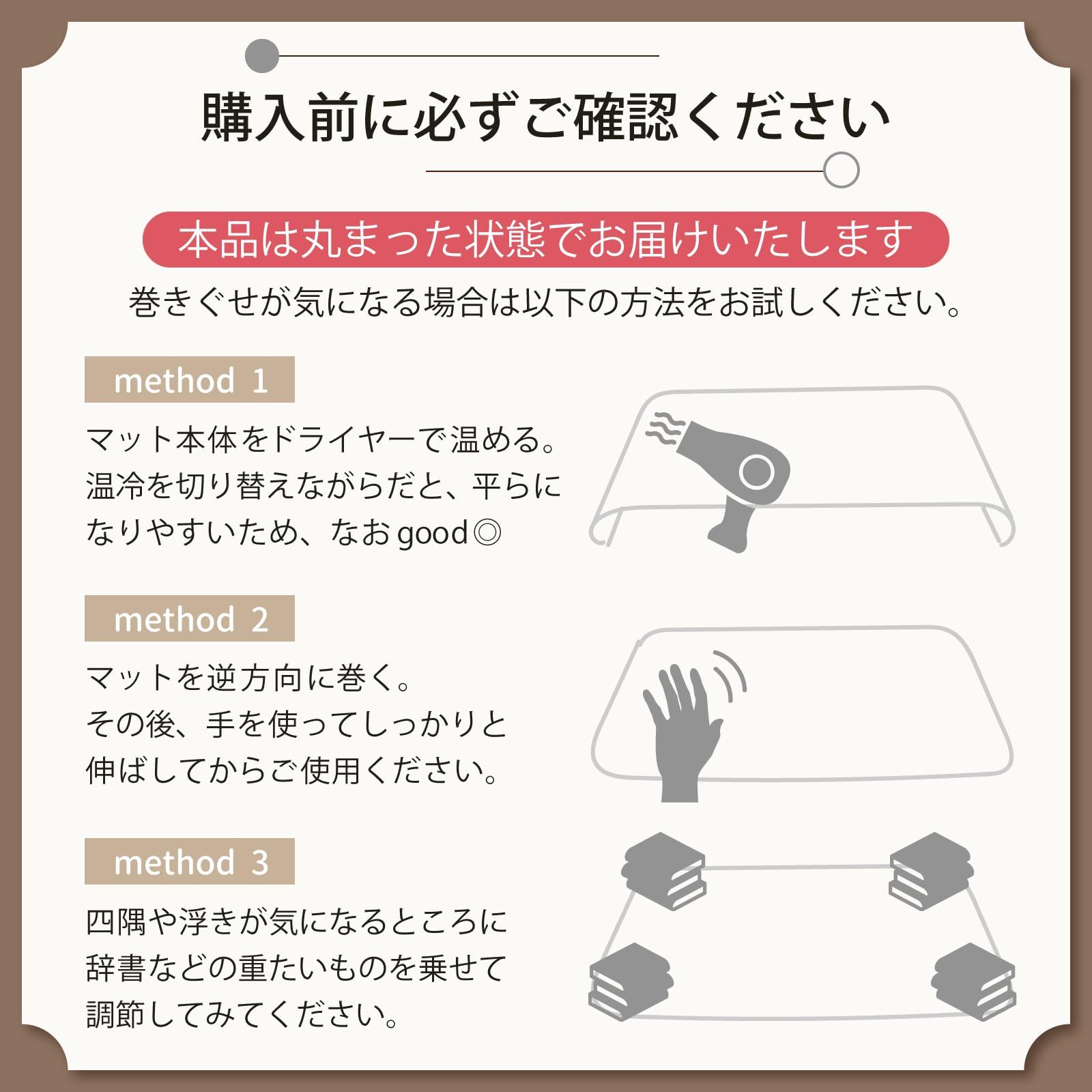 ??【サッと拭くだけ!お手入れ簡単&床暖房OK!耐熱温度は80℃】撥水性の高いPVC素材を使用しているため、サッと抜き取るだけでお水や油汚れも簡単に落とせます。また、約80度までの耐熱加工を施しているため、床暖房でも安心して使えます。※耐熱温度は80度ですが、安全のため、60度を目安にご使用ください。