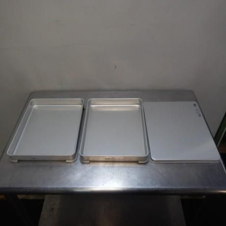 【6枚セット+ふた1枚】アカオ アルミ 小40 ×4 小50 ×2 システムバット アレンジバット ギョーザバット W266D346H40mm 3.4L 厚1mm 商品は新品です。 多少の傷汚れあります。 状態画像にて判断願います。 よろしくお願いします。
