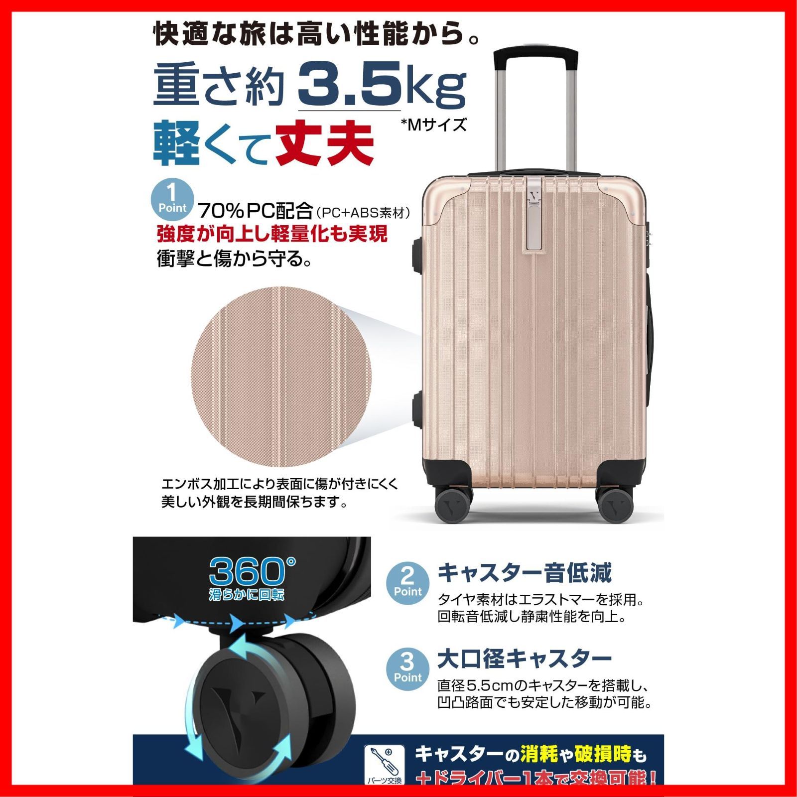 商品 キャリーケース キャリーバッグ キャスター交換 日本企業企画 一部パーツ無期限メーカー TSAダイヤルロック スーツケース ダブルキャスター Mサイズ 客室乗務員監修 4 7泊 3 5 kg 64 L VELSKYF シャンパンゴール