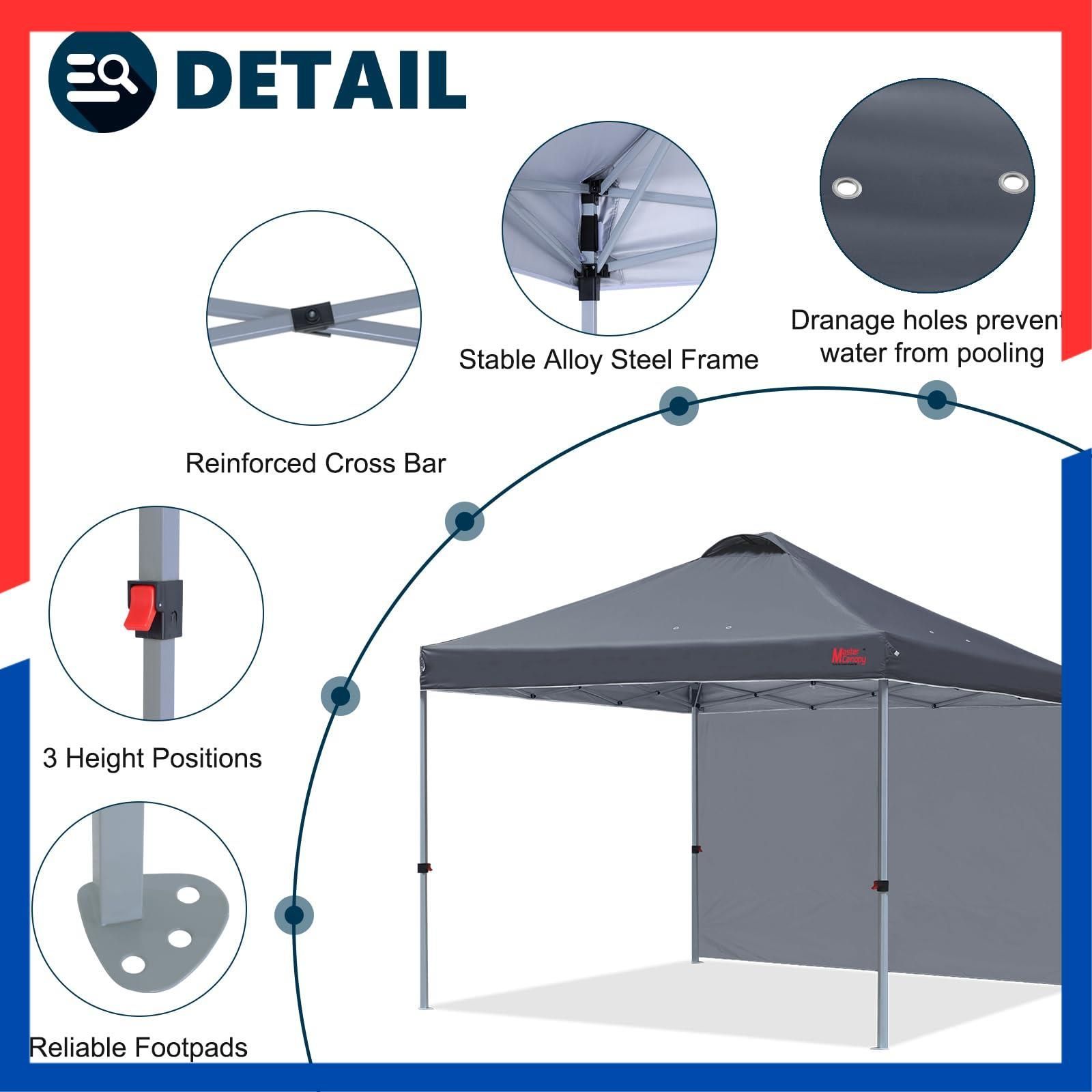 マスターキャノピー(MASTERCANOPY)ワンタッチタープテント サイドシート一枚セット 2M/2.5M/3M 三段階調節 スチールフレーム 風抜けベンチレーション 耐水 UVカット サンシェード 日除け 商用 アウトドア用(キャスターバッグ ペグ ロープ ウェイトバッグ付き)(3M深灰)
