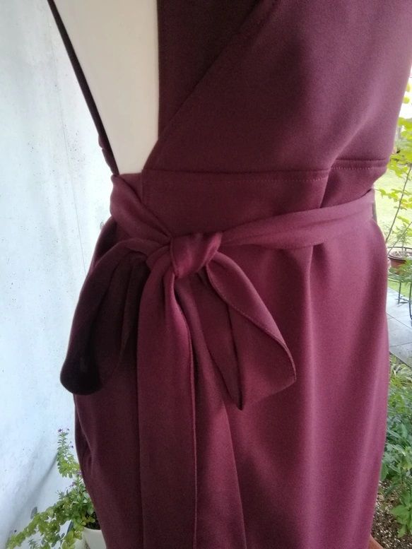 4 L 6 梨地ストレッチ ボルドー 茶道お稽古用エプロンウエストリボン127100 50 2