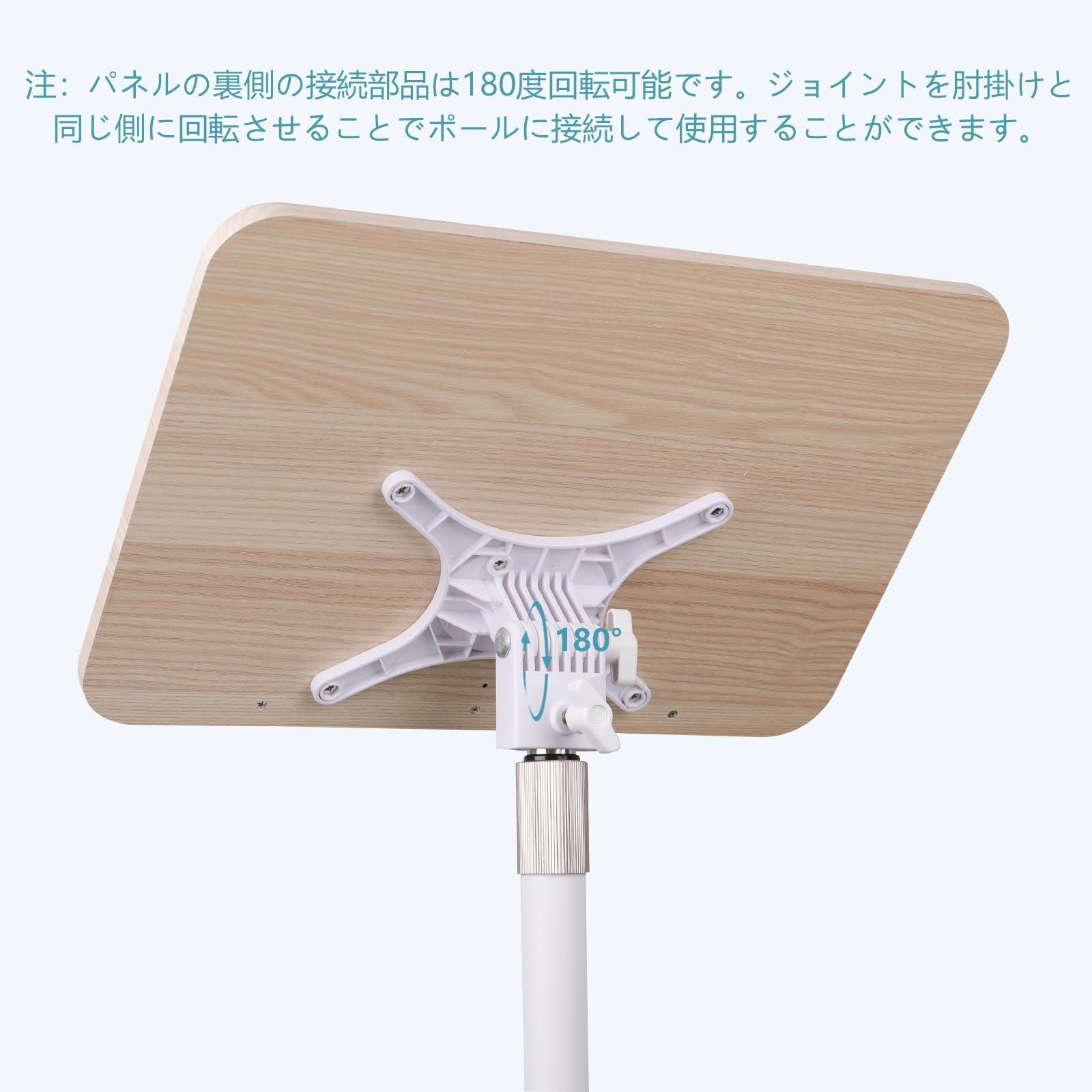 【多角度調整】少ない力でスムーズに高さを調整できます。多角度調整可能:★メタルポール調整高さ:54cm-170cm。★厚板の傾斜角度: 上下向き180°、★ピボット機能:左右に360°回転。いつでもどこでもモバイル利用。注:金属のつまみを緩めると、伸縮杆内に格納された棒を引き出し、金属のつまみを締めることで高さの調整が完了します。