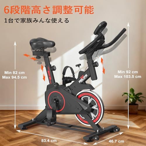 RELIFE Rebuild Your Life エアロバイク 家庭用 静音 フィットネスバイク スピンバイク サイクリングマシン ダイエット器具 シームレスな負荷調節 室内自転車 トレーニングバイク 組立簡単po 59371 d 86