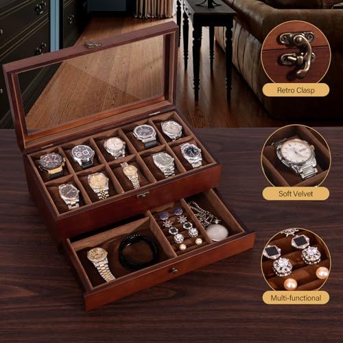 JoyHood 腕時計ケース 10本 2段式 木製時計収納ボックス 男性 女性 腕時計&ジュエリー 収納ボックス 引き出しとアクリル蓋付き 小物整理プレゼント アクセサリー収納 399 cdabb