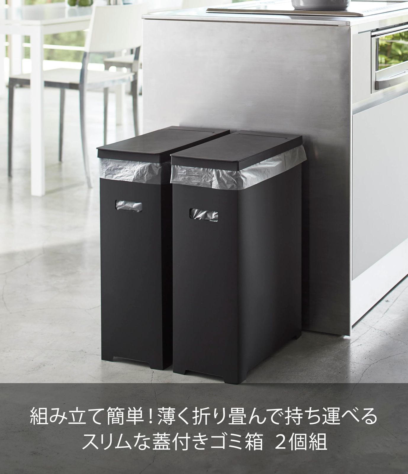 組み立て簡単! 45?ゴミ袋がぴったりのスリムな蓋付きゴミ箱。
