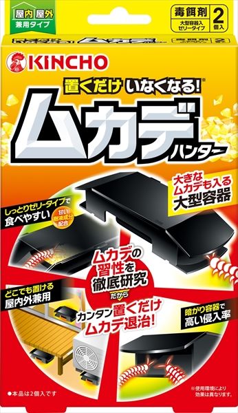 置くだけ簡単のムカデ用ベイト剤。ムカデの習性を徹底研究した大型容器としっとりゼリー処方でムカデがいなくなります。