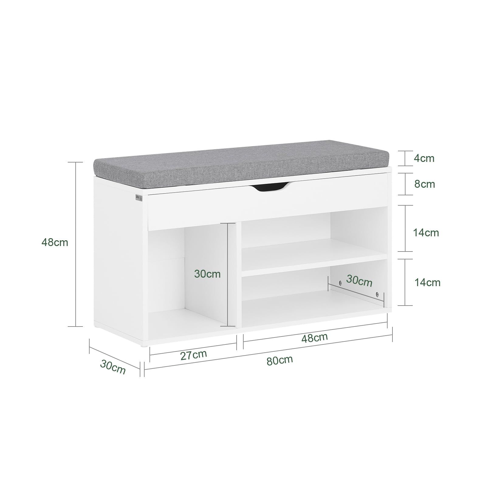 SoBuy 玄関ベンチ シューズラック 収納ベンチ スリム 下駄箱 靴箱 収納 幅80×奥行30×高さ47.5cm 小物収納 シューズベンチ 玄関収納 靴収納 玄関椅子 玄関 腰掛け ベンチ 靴棚 スツール 靴入れ(FSR45-HG/ホワイト)