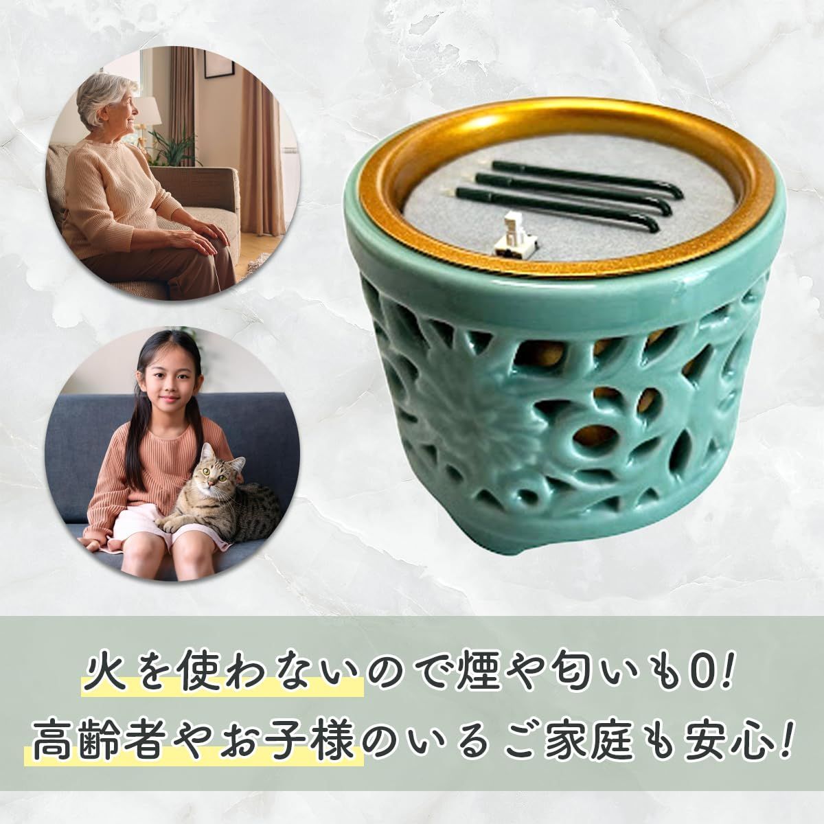 火を使わないので火災の心配なし。