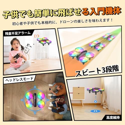 【子供でも簡単に飛ばせる機能が充実】この小型ドローンは100g未満でドローン登録が不要で、ワンキー離陸、高度維持、ヘッドレスモード、操縦モード切替など便利な機能を搭載し、子供でも手軽に飛ばせます。放り投げるだけでドローンは自動的に飛行スタートすることが可能です。さらに、三段階のスピードを切り替えられ、初心者から使い慣れレベルまでそれぞれのスピードで操作を楽しめます。遊びながら空間認識能力、判断力や集中力を簡単に鍛えることができます。