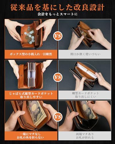 【使いやすいコンパクトサイズ】本革財布を開けると、カードがそれぞれ独立して立ち並ぶので見やすく出し入れしやすい。キャッシュレス時代に最適でカード決済に抜群の実力を発揮する、時短長財布です。「お支払いの動線」を意識し、従来のメンズ長財布を基づいて、「通帳ポケット」を追加し、おろしたお