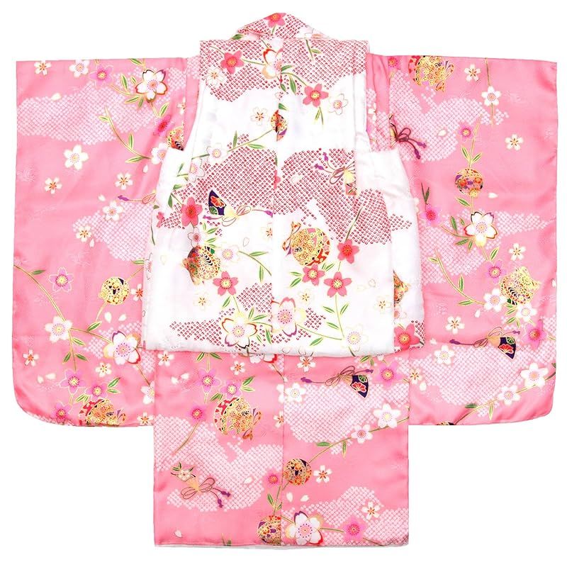 商品名:【新品】 [KYOETSU] [キョウエツ] 着物セット 七五三用 3歳用 被布セット 華やかA 9点セット(柄被布、柄着物、伊達衿、長襦袢、髪飾り、巾着、草履、腰紐、足袋) ガールズ (3.桃色桜鞠)