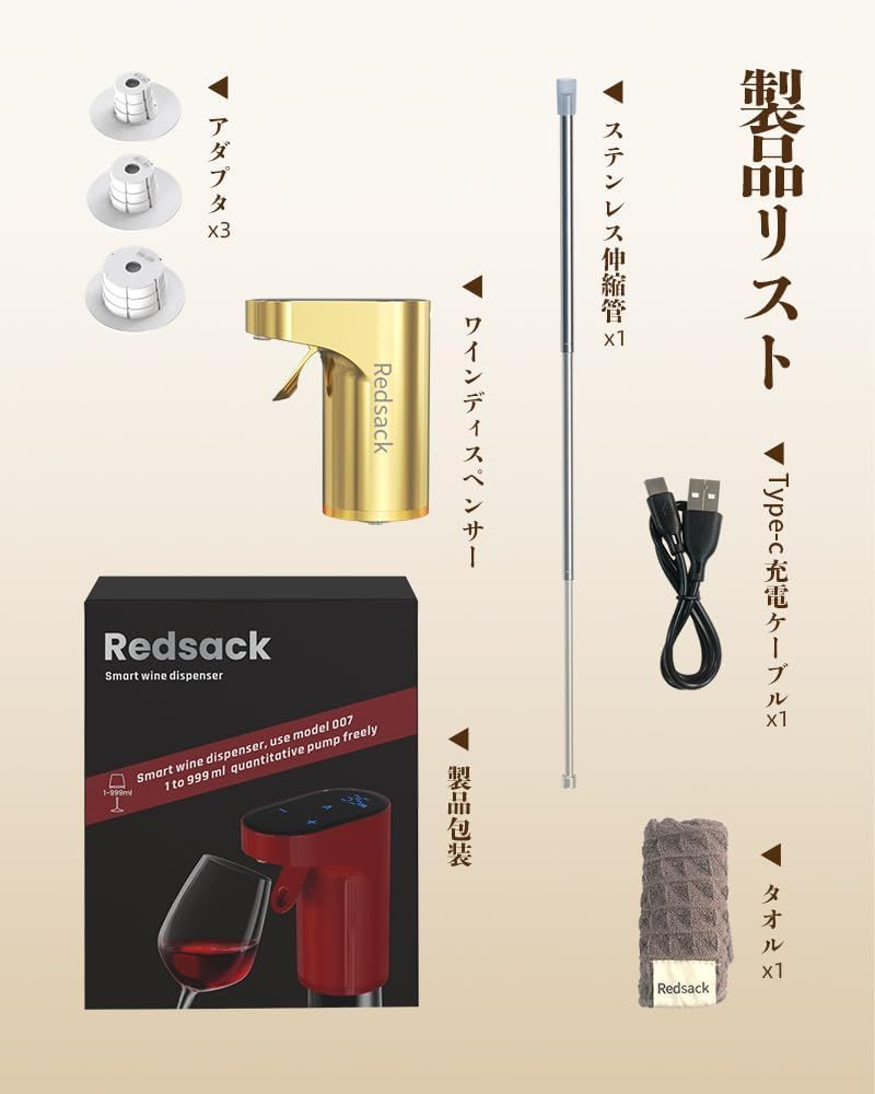 Redsack ウイスキー ポンプ 4 L 2 7 L瓶対応 電動 定量調整可 1 999 ml 計量ディスペンサー お酒ポンプ 充電式ワインデカンター ポアラー 自動ワインエアレーター ウイスキーサーバー デジタル表示 自宅 キャンプ 晩酌 金