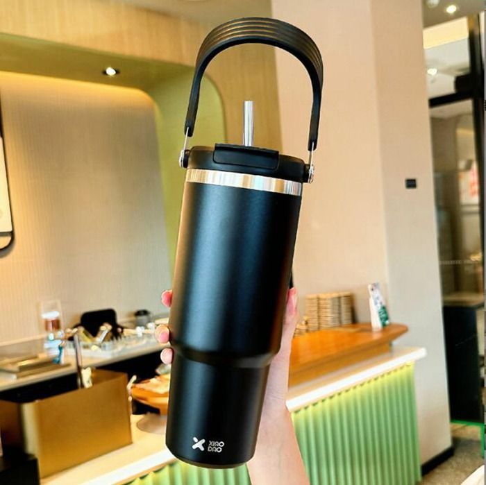 ストロー付きタンブラー 持ち運び 大容量 こぼれない 蓋 保冷 保温 水筒 蓋付き 二重構造 真空断熱 セラミックコーティング タンブラー 304ステンレス wujinb 01