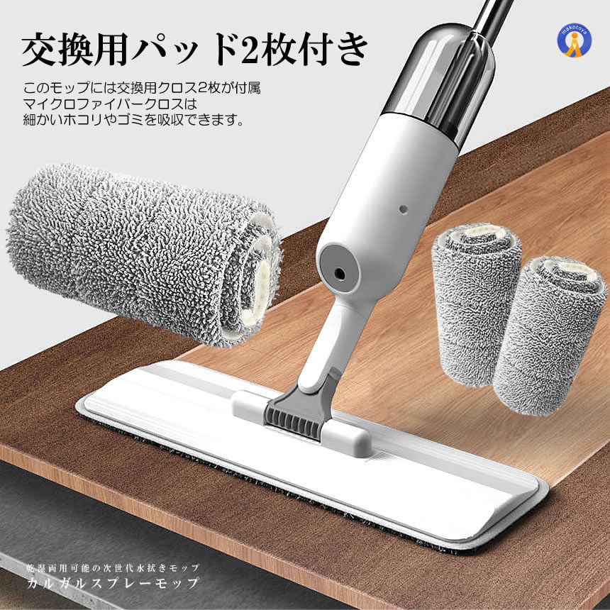 セット スプレーモップ 噴射式 350 ml大容量 水拭きモップ 噴水 フロア ワイパー 乾湿両用可 0 35 L 床掃除 フロアモップ お掃除 片手操作 KARUKASU 宅配ヤ