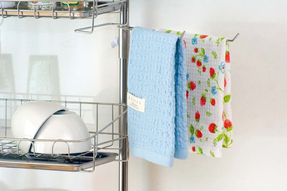 幅がスリムで狭いキッチンスペースでも有効に使えるラック。突っ張り固定式なので設置でキッチンを傷めません。調理中の「ちょっと洗ってまた使う」包丁・ザル等の調理用具の一時置きやコップ類の水切り収納、スパイスラックとしてお使いいただけます。布巾掛け、箸立て、シートまな板立て、フック、トレーがついた、コンパクトに活躍するラックです。