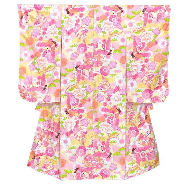 七五三 着物 7歳 式部浪漫 ブランド 総柄の着物 合繊 結び帯ほか コーディネートフルセット ピンク 鶴と鞠 雲 SR 7 pk 2108 f 2003 GR