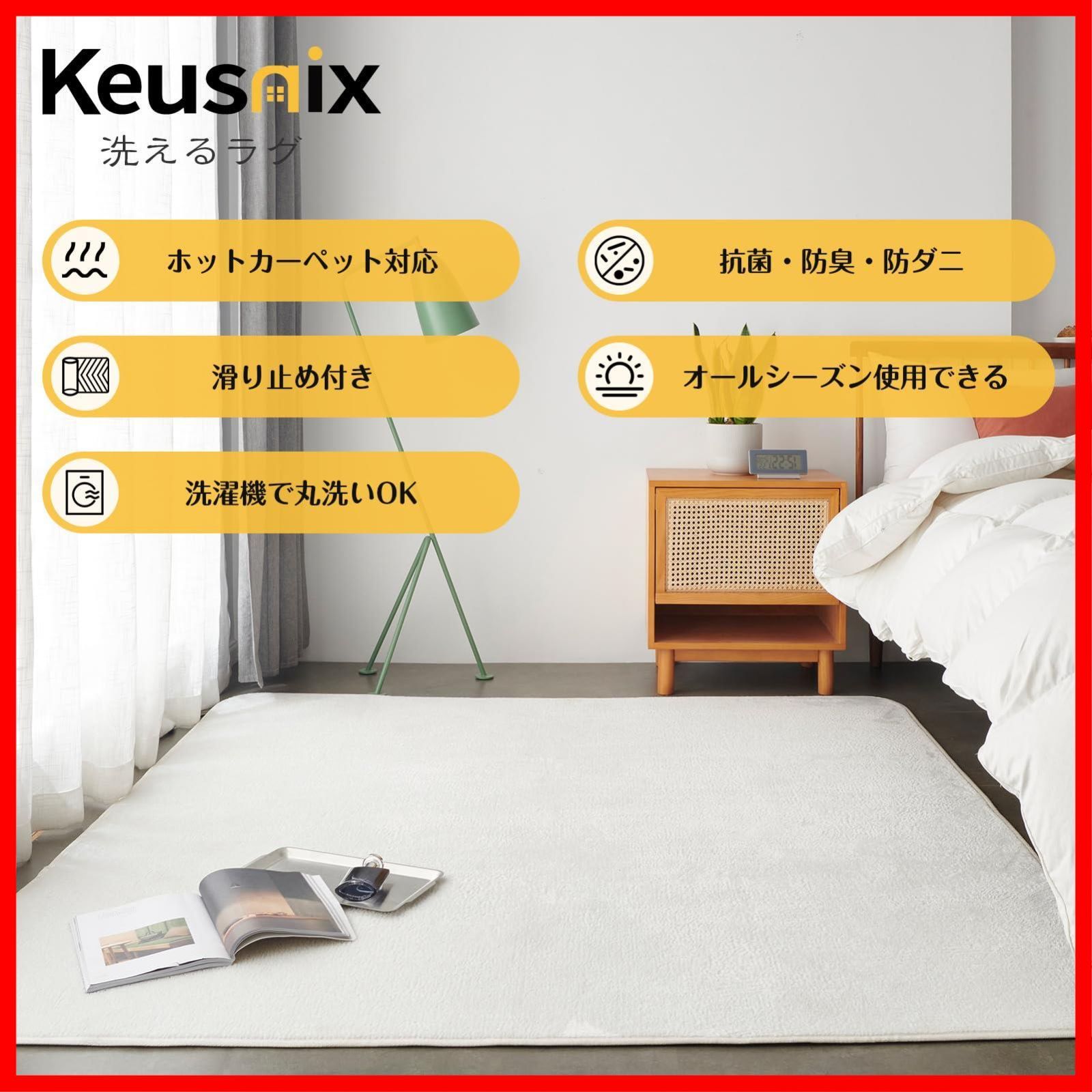 商品 約3畳 絨毯 200 250 cm 防ダニ 洗える 抗菌 防臭 ラグマット滑り止め付 オールシーズン快適に使用 床暖房 ラグ ホットカーペット対応 ふわふわ肌触り カーペット フランネルラグ 無地 Keusnix ホワイト