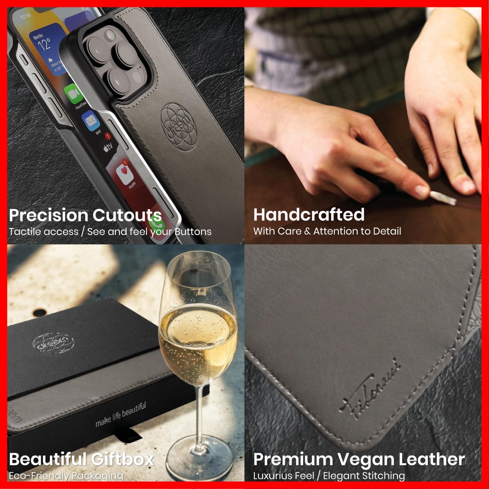 あなたのiPhoneは真剣な投資です 真剣なウォレットケースで保護しましょう 気づいたことがありますか ほとんどの iPhone ケースは非常に貧弱な作りで、iPhoneを保持する価値はありません フィボナッチは違う 2 in 1の汎用性を追求したこの超洗練された携帯電話ウォレットケースは、次の両方の最高のものを提供します RFIDブロッキングテクノロジーを備えた複数のクレジットカードスロットと、最大10枚の現金紙幣を収納できる隠しインナースリーブを備えた豪華なビーガンレザーです スリムでスタイリッシュなインナーiPhoneケース 耐衝撃TPU製 一瞬で着脱できるので単独で使えます さらに、次のような優れた機能を提供します Magsafeはワイヤレス充電に対応しています RFIDブロッキング技術が3つのカードスロットすべてに統合されています エレガントなカットアウトにより、すべてのポートとボタンに即座にアクセスできます 通話中に音声を聞くためのスピーカーホール 他にはないほど簡単に開閉できる独自のダブルクラスプ 2つのキックスタンド 縦と横 ハンズフリーで便利 豪華なマイクロファイバーの裏地で携帯電話を傷から守ります 1mmの隆起したベゼルエッジで最適な画面保護 あらゆるマグネットマウントに取り付けられます 内蔵された金属バッキングのおかげで、Fibonacci iPhoneケースはあらゆる磁気マウントに簡単に接着します ダッシュボードマウントや車の電話ホルダーに最適です 美しい箱入りですぐにプレゼントできるので、すぐにカートに入れてください