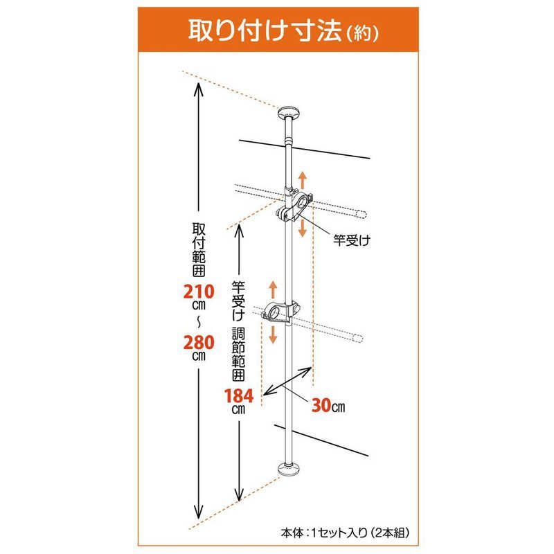 ・商品サイズ:約 奥行30×高さ280(cm) 取付け高さ範囲:210~280cm 竿受け高さ:約184cmまで 物干し竿の直径 約4cmまで