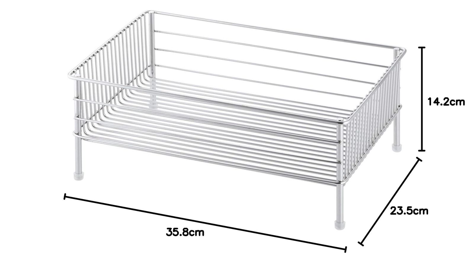 18-8ステンレス鋼を使用しています。 底に溶接部分が無いので、汚れがたまらず、清潔を保ちやすい形状です。かごの深さを浅めにする事によって、食器の出し入れがしやすくなりました。 底はワイヤーが縦にまっすぐ通っているだけのシンプルなデザインで、ワイヤーのピッチが細かく、フラットなので、皿も立てやすく、グラス等を置いた時の安定性に優れます。 LB-022 ステンレス水切りトレー小やLB-059 ステンレスポケット小などと組み合わせてご使用いただけます。