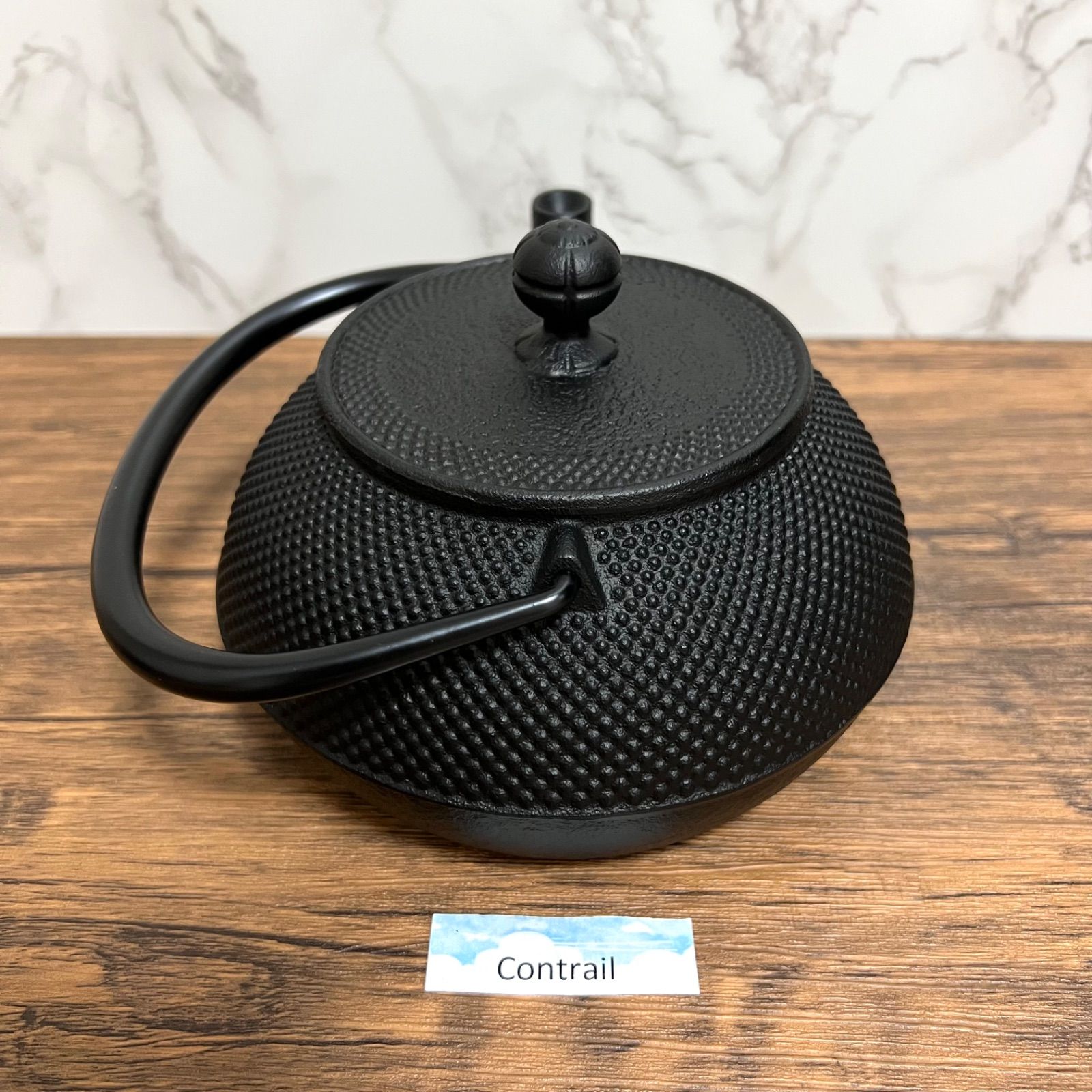 南部鉄器の代表的なアラレ模様がほどこされた7号サイズの鉄瓶です。