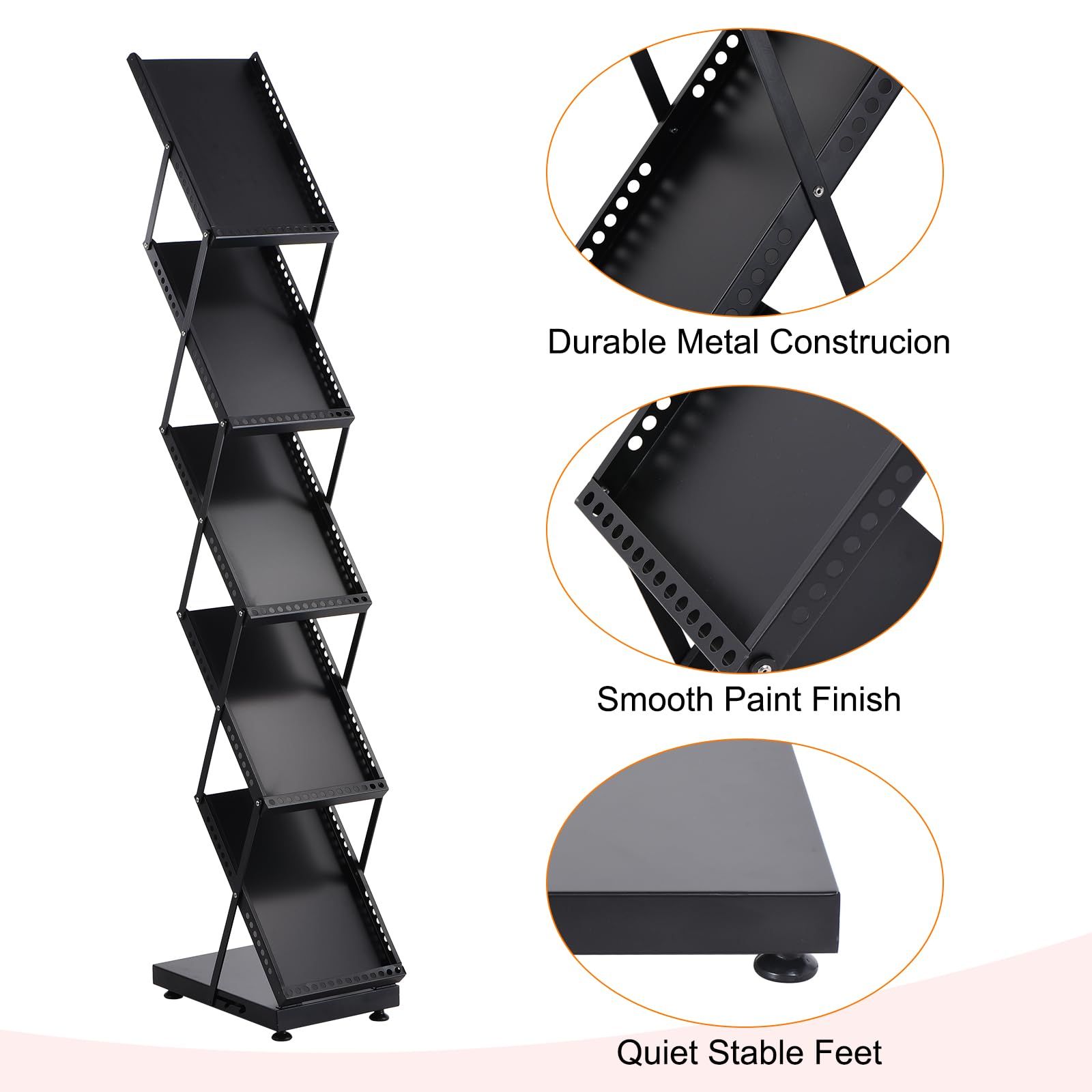 PATIKIL 折りたたみ式マガジンディスプレイラッ ク 5段階 パンフレットスタンド カタログ文献ラッ ホテル 展示会 貿易ショー オフィ ス用 ホイール付き