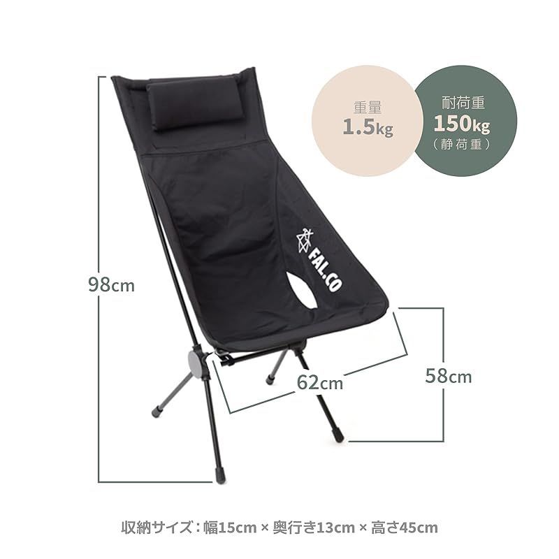 FAL CO FOLD HOLD CHAIR ファルコ フォールドホールドチェア Utility High Back アウトドア キャンプ 折り畳み ブラック サイドポケット 釣り ハイキング フェス