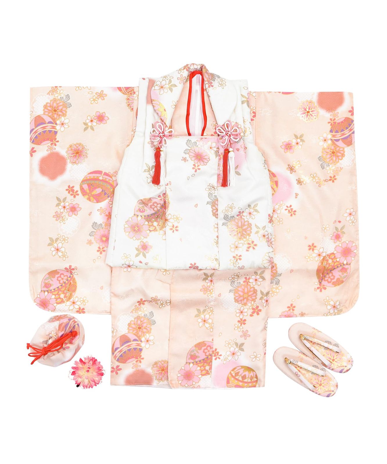 KYOETSU キョウエツ 七五三 3歳 女の子 着物 セット 被布 小物 フルセット 754 くすみ B 7 霞橙の鞠幻想