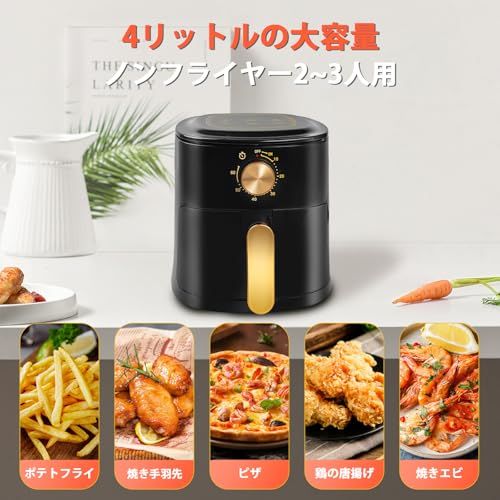 ノンフライヤー 大容量 電気フライヤー ノンオイル 家庭用 揚げ物 惣菜 3?5人用 タイマー 中断記憶機能付き 日本語説明書 日本語レシピ付 ブラック 4 L p e 0 a 9 d 64 c