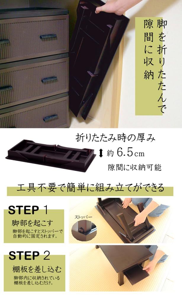 オスマック(OSMAC) 経机 文机 仏壇台 幅60×奥行30×高さ25cm 折りたたんで収納可能 供物台 供養台 写経机 便利机 天然木桐製 ブラウン SDX-600BR