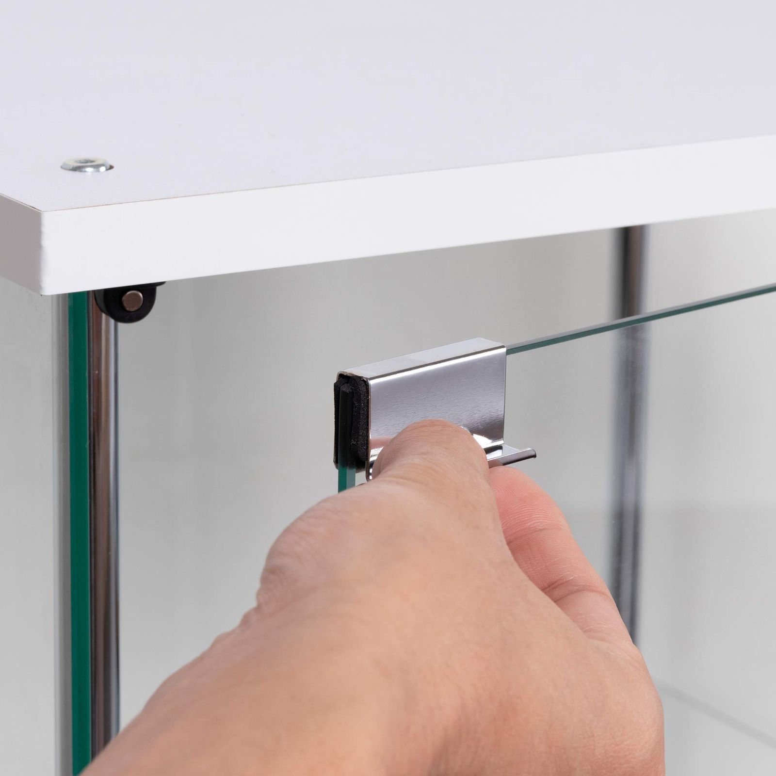 ガラスはすべて強化ガラスを使用し、棚板耐荷重は5kgです。
