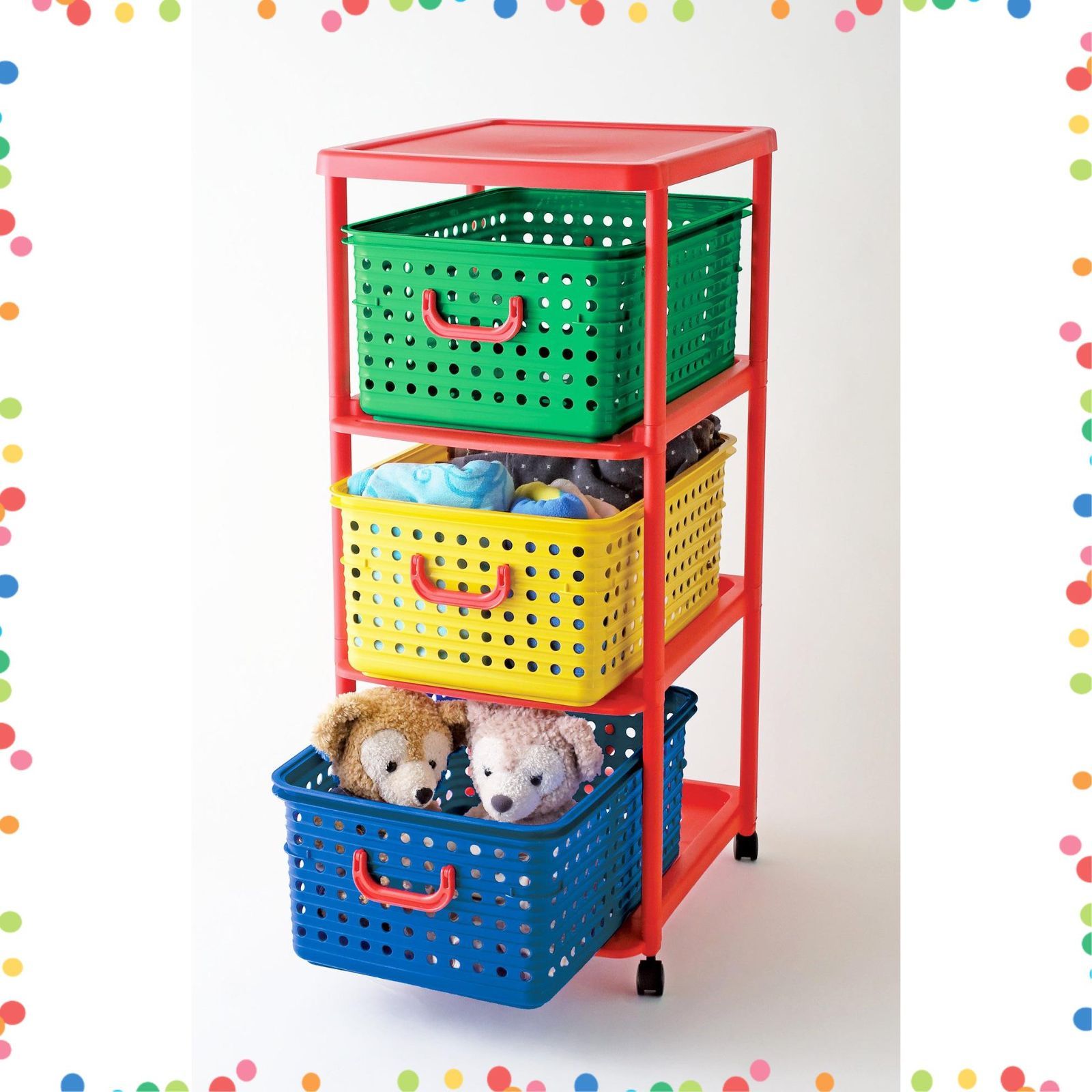 和泉化成 収納バスケット キッズ バスケットラック3型キャスター付 (45×56×高103cm)