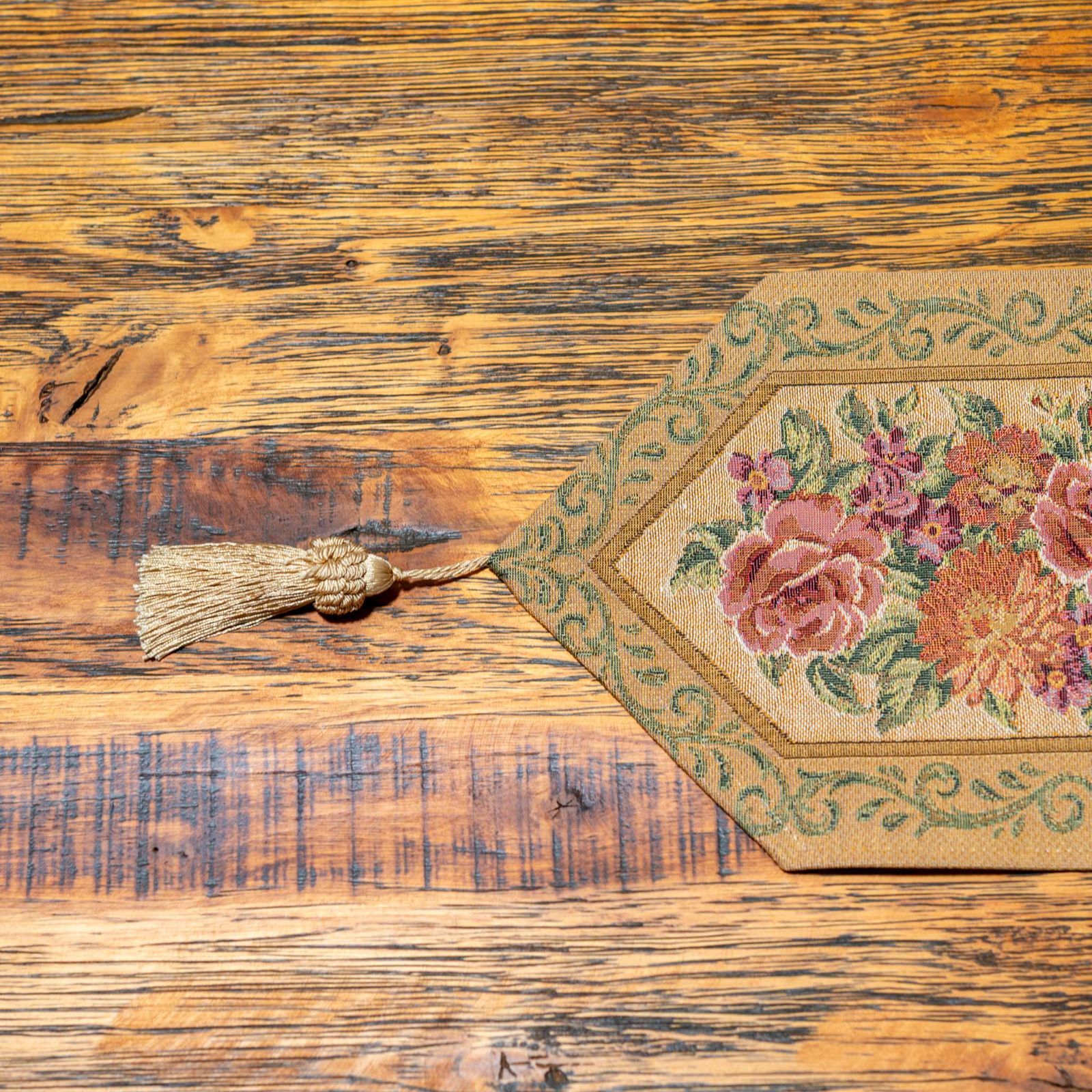 両端に施されたタッセルが優雅なアクセントとなり、ダイニングやコンソールテーブルを格調高く演出してくれます。