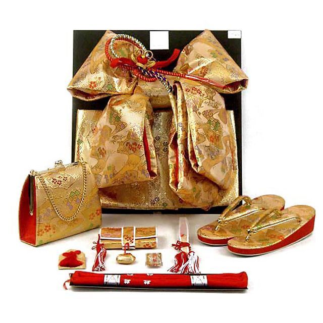 人気ブランド 「式部浪漫」の絵羽柄の着物に、結び帯や筥迫セット、帯揚げやしごきなど、その他、着付けに必要な小物をセットにしたフルセットです。