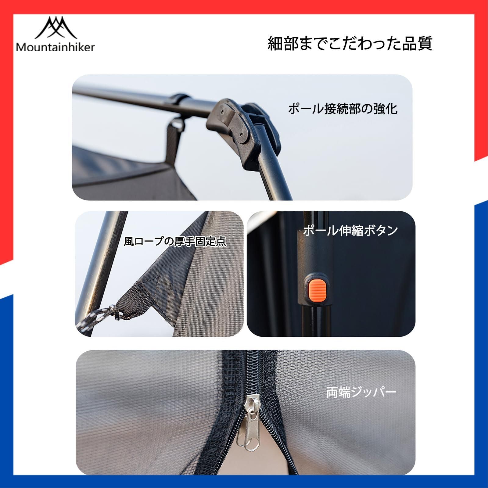 蚊帳テント 一式 四面メッシュスクリーンテント 3 m 2 1 大型サンシェード 防虫 通気性 Mountainhiker ワンタッチ設営 BBQ キャンプ 庭 アウトドア用 カーキ